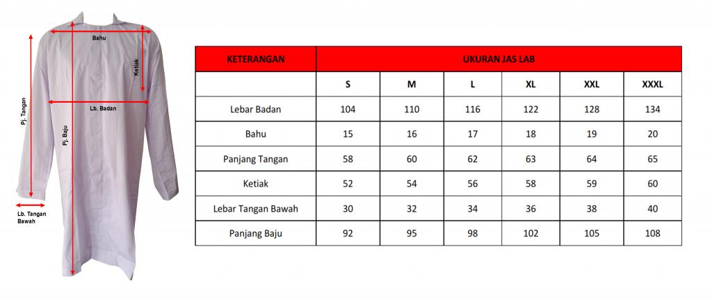 Ukuran seragam dan apparel dapat dikonsultasikan dan diskusikan dengan tim hygieness - Jas Laboratorium